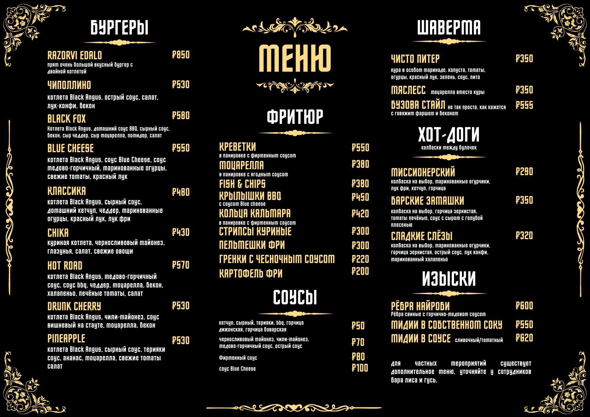 Наше место - это также отличная бургерная. Мы предлагаем нашим посетителям полюбившиеся продукты - те, которые так ценятся жителями больших городов и не только. Бургеры, картофель-фри - когда-то считавшаяся уличной, эта еда сегодня не уступает по технологии приготовления и вкусовым качествам иногда даже с ресторанной.